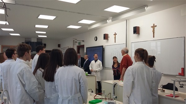 2018. március 23-án Bert Sakmann Nobel-díjas német sejtfiziológus látogatta meg iskolánk természettudományos laborját, hogy ismerkedjen a diákokkal és az ott folyó szakmai munkával. Képek a Galériában.