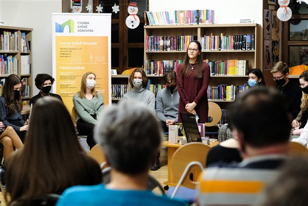 Pilinszky-est Iskolánk versmondó köre január végén Pilinszky-műsort adott elő a Csorba Győző Könyvtár Várkonyi Nándor Fiókkönyvtárában. 2022.02.14
