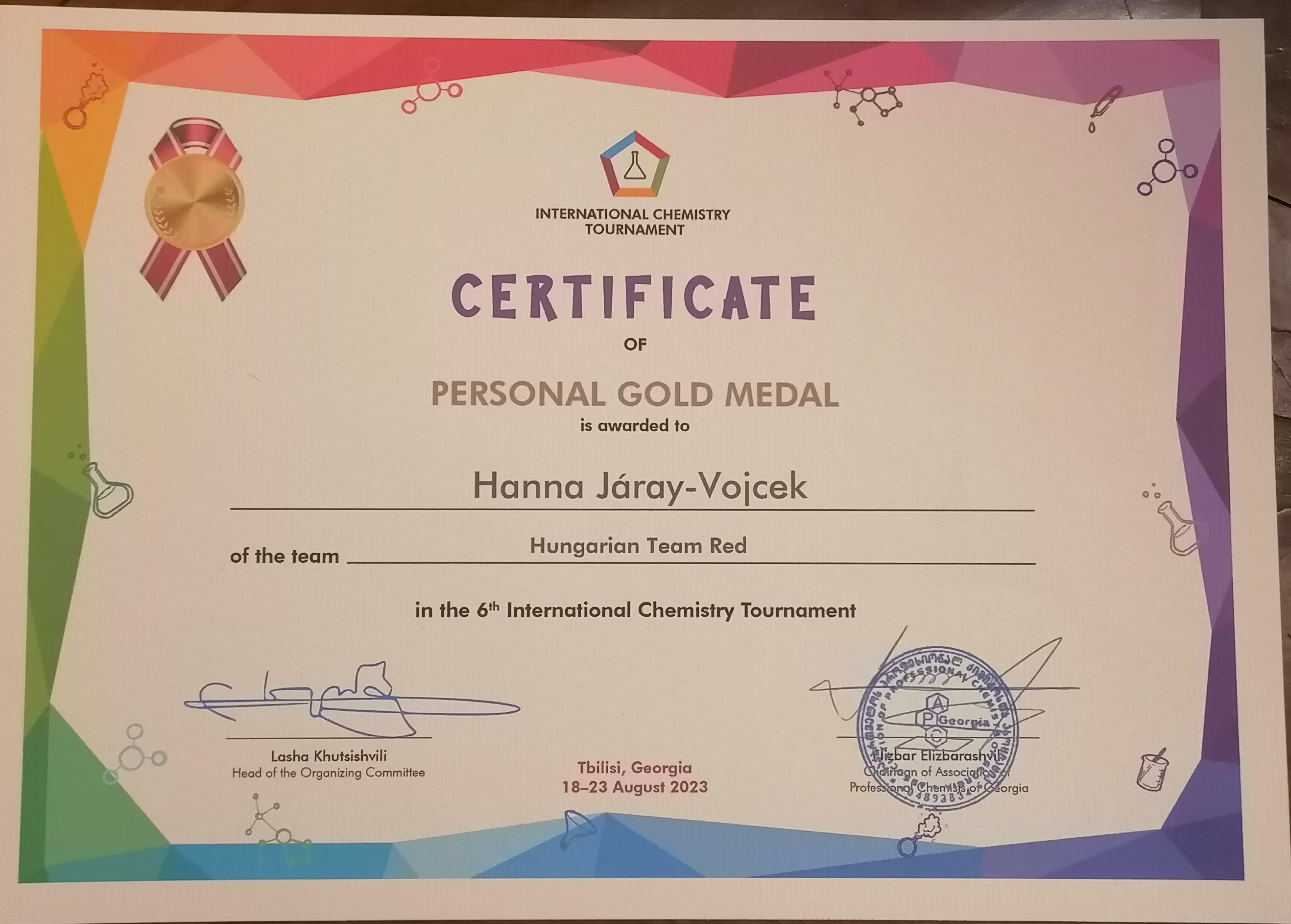Járay-Vojcek Hanna (12. C) a Hungarian Team Red csapat tagjaként, aranyérmet szerzett. Ezen a versenyen egyéni teljesítményeket is értékelnek, Hanna aranyérmet kapott.